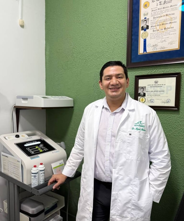 Nuestra clínica, ubicada en San Salvador, El Salvador, ha sido diseñada con un estilo moderno y acogedor de Med-Spa, donde cada detalle se esfuerza por brindar comodidad, seguridad y confianza. Ofrecemos un amplio portafolio de servicios que abarca desde consultas generales y medicina preventiva hasta fluidoterapia intravenosa, terapias especializadas como ondas de choque y terapia neural, fisioterapia, electrocardiogramas, análisis de orina, tratamientos para el cuidado de la piel y procedimientos estéticos. Todo diseñado para ofrecer soluciones médicas y de bienestar en un solo lugar.